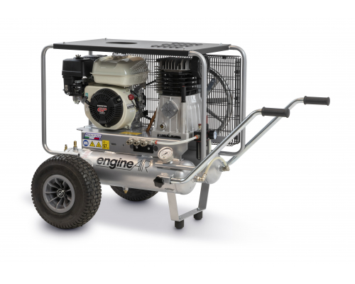 De Abac zuigercompressor EngineAir 5-11+11 is een mobiele benzine compressor met een Honda motor.
