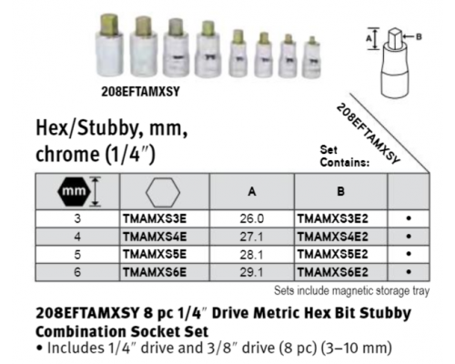 1/4 Hex/Stubby, mm,14DT-MHB-2