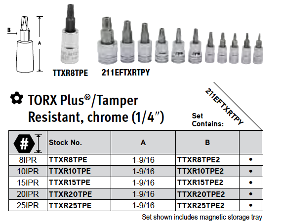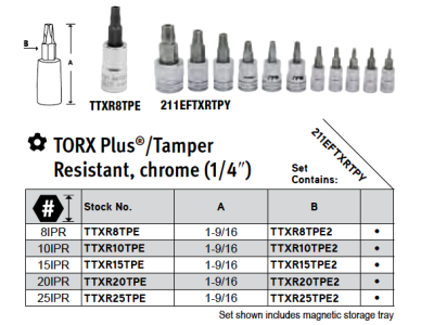 Snap-on 1/4 Torx plus tamper resistant chrome