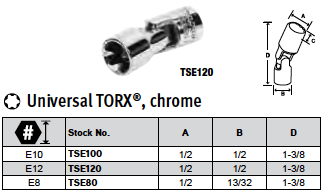 UNIV INTRNL TORX SCKT 1/4IN E8