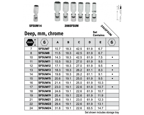 3/8 Knikdoppen diep, mm, chrome38DT-FDU-3