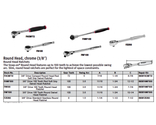 De 3/8 ratel met ronde kop combineert precisie en kracht met uitzonderlijk comfort en veelzijdigheid. Of je nu werkt in beperkte ruimtes of behoefte hebt aan een betrouwbare ratel, de Snap-on ratels met ronde kop bieden de prestaties die je nodig hebt om elke klus efficiënt te klaren.