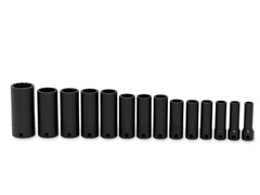 3/8 inch Hoge Flank Drive slagdoppenset, 12-kant, 14-delig (8 - 19, 21 en 24 mm.)