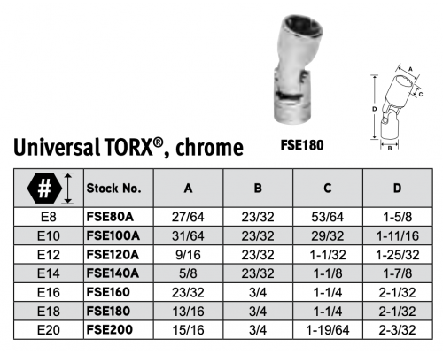 3/8" Universal TORX©, chrome38DT-TOR-8
