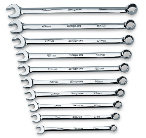 Ring/steeksleutelset met Flank Drive, lang, 12-kant, 10-delig (10 - 19 mm.)