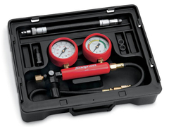Manometer die de aanvoer persluchtdruk weergeeft voor een goede cilinder lek test met nauwkeurige resultaten. ¥ Cilinder lekmanometer geeft de lektest aan in procenten van de aangeleverde druk in 3 zones, hoog, gemiddeld en laag. ¥ Manometer bereik 0 - 7 bar Te gebruiken op alle Amerikaanse en importmotoren De ingangsdrukmeter geeft de ingangsluchtdruk weer voor de juiste opstelling van de cilinderlektest en nauwkeurige resultaten Het bereik van de manometer is 100 psi (700 kPa) in stappen van 2 psi (20 kPa) De cilinderlekmeter geeft lekkage weer als percentage van de ingangsdruk met drie onderscheidende zones: hoog, gemiddeld en laag